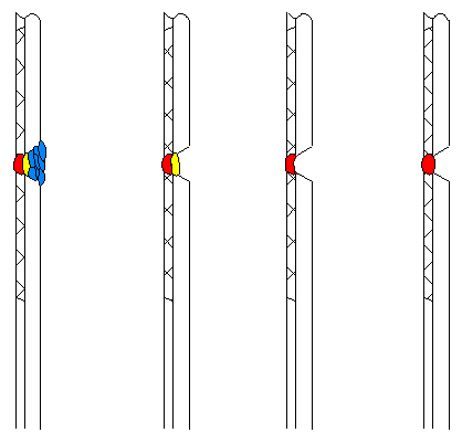 The sketches below show SOME of the steps used while welding composite tube window welds. ALWAYS perform these operations in accordance with the Manufacturers, Owners, and Jurisdictional requirements. The sole purpose of this page is to allow visitors to gain knowledge regarding this process. I will try to add some more detail and pictures if I find them. This page was made in reference to a topic at the American Welding Society Discussion Forum.